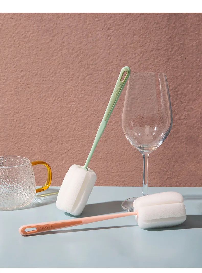 2874 Cup Scrub Brush Bottle Wine Cup  Kettle Cup Clean Long Handle Wash Bottle Brush Remove Coffee Tea Stains Sponge BrushName|Long handle sponge cup brush