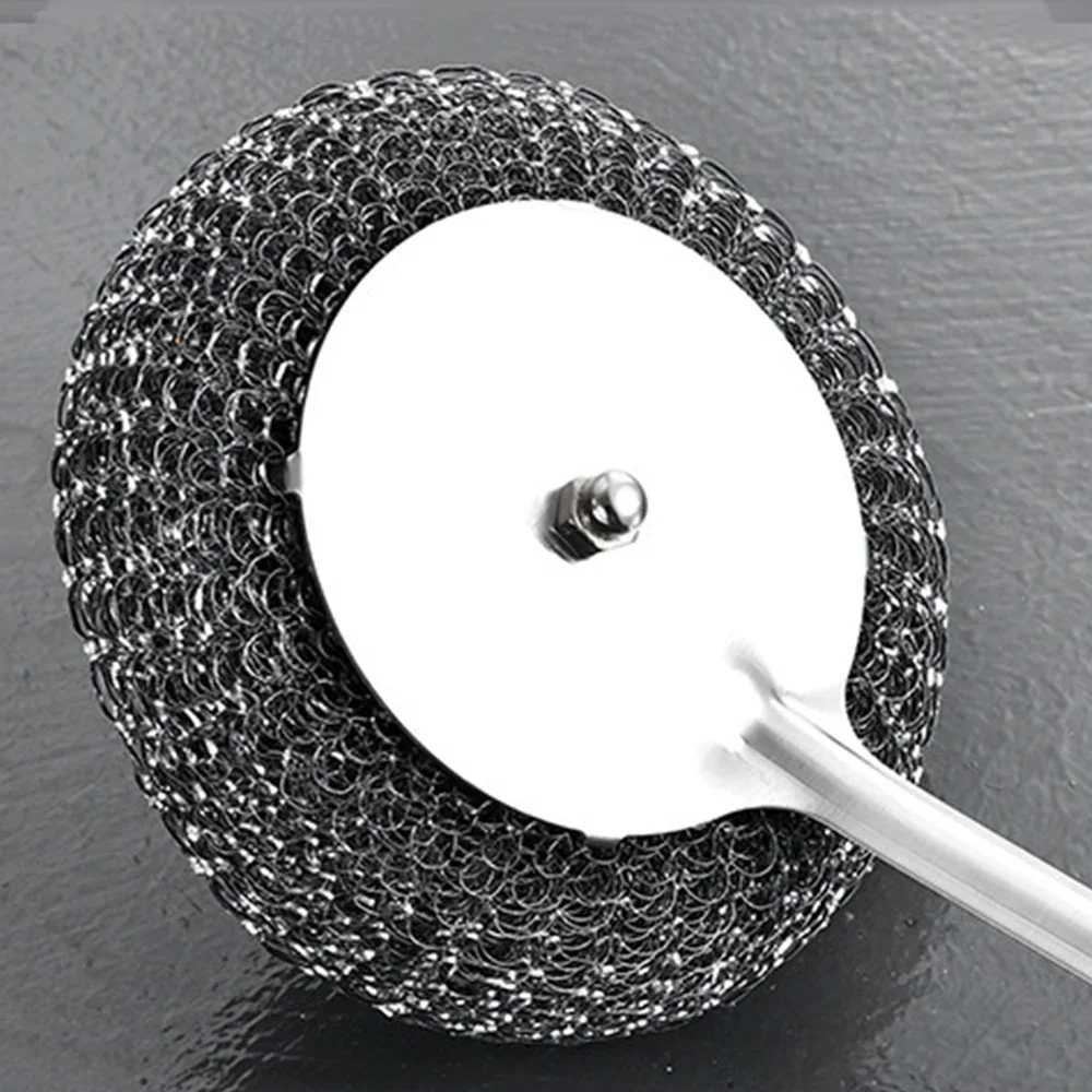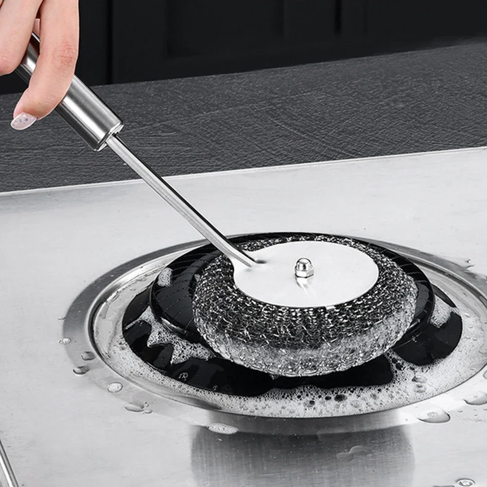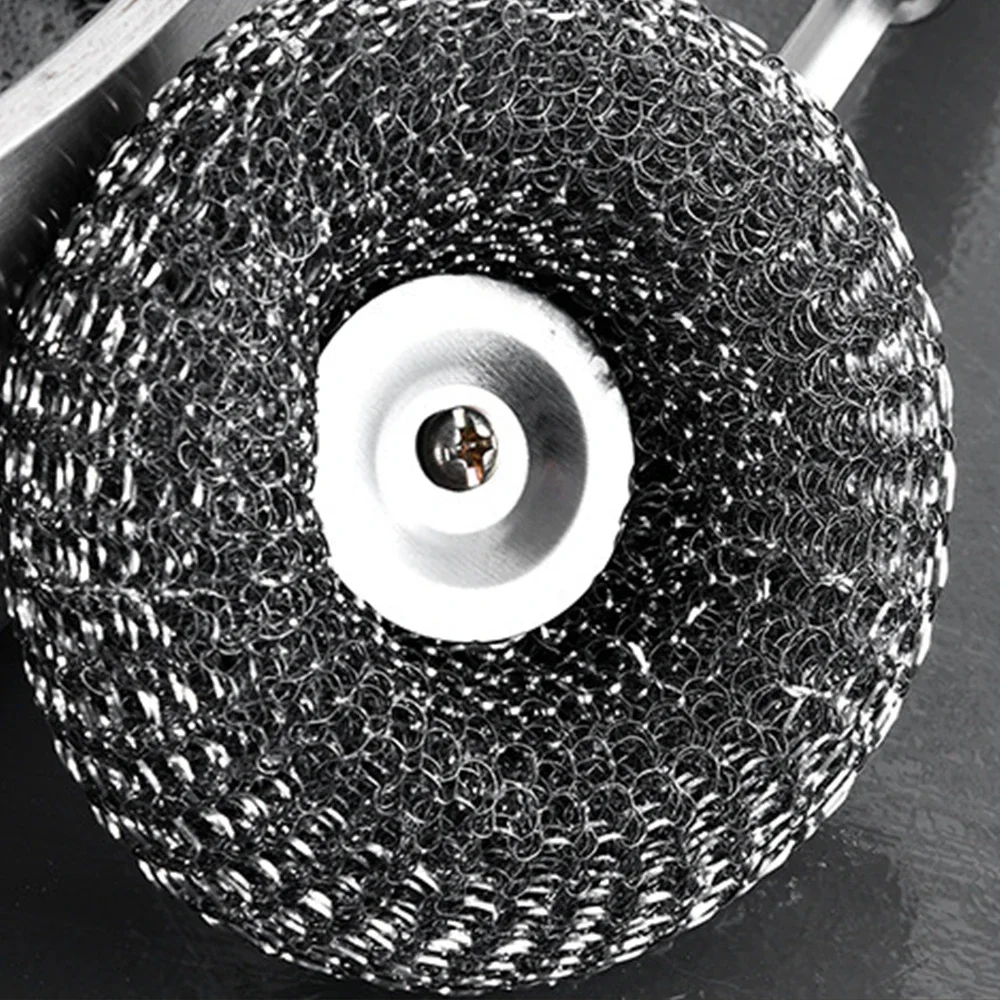 Strong Decontamination Cleaning Brush Long Handle Pot Brush Kitchen Pan Pot Dishes Cleaning Brush Steel Wire Metal Wool Scourer
